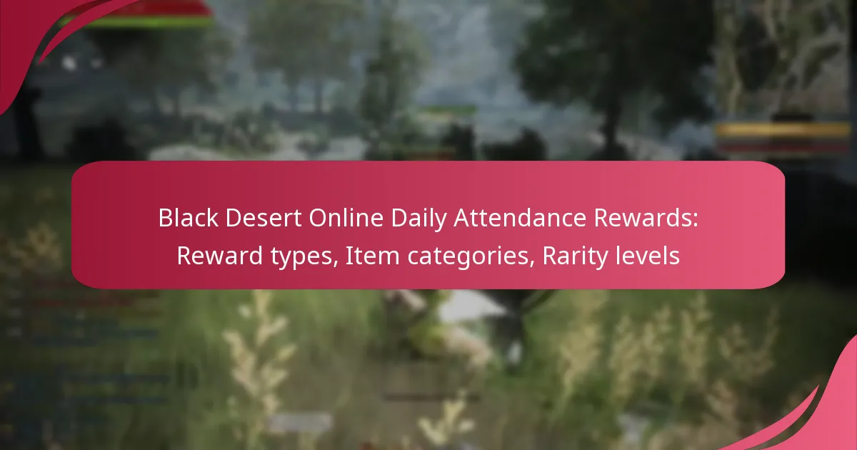 The daily attendance rewards in Black Desert Online consist of several item categories that enhance gameplay and provide valuable resources. Players can expect to receive items ranging from gear and consumables to crafting materials and cosmetics, each with varying levels of rarity. Understanding these categories can help players strategize their attendance for maximum benefit.